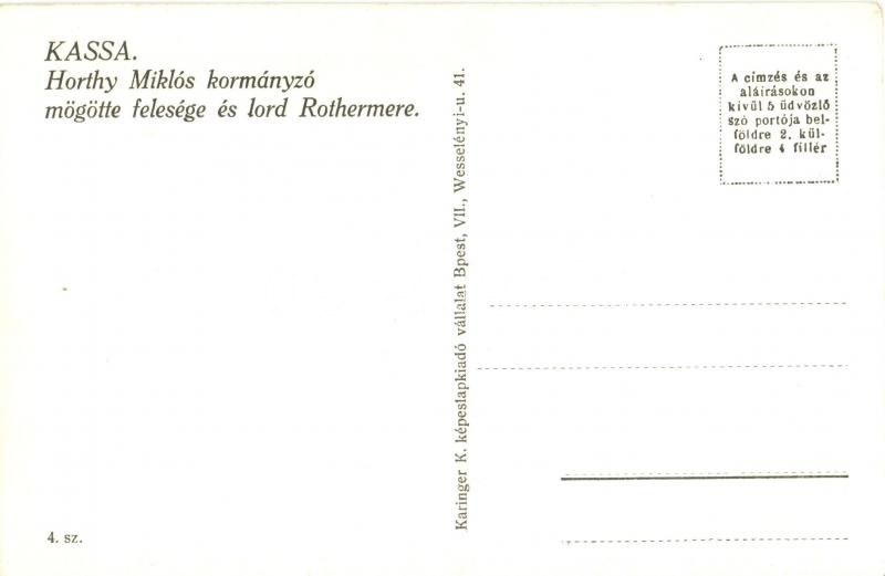 1938 Kassa, Kosice; bevonulás, Horthy Miklós kormányzó, Purgly Magdoln... https://www.darabanth.com/de/27-Gross-Auktion/27.1/Ansichtskarten/Slowakei~10796/1938-Kassa-Kosice-bevonulas-Horthy-Miklos-kormanyzo-Purgly-Magdolna-Lord-Rothermere-entry~II1567364