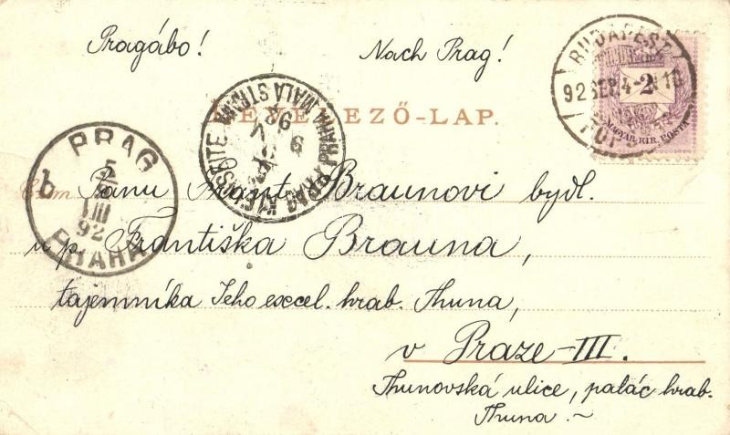 Beschreibung: 1892 (Vorläufer!) Budapest, látkép. floral, litho (EK)
