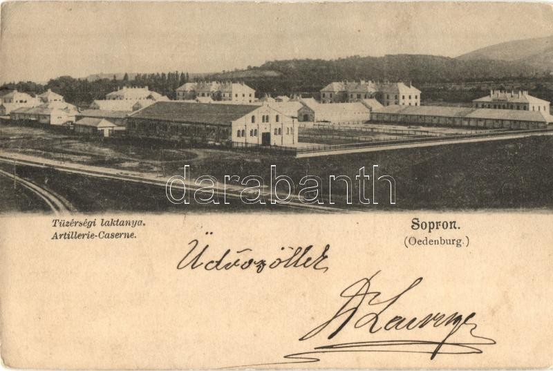 1898 Sopron, Oedenburg; Tüzérségi laktanya / Artillerie Caserne (EB) https://www.darabanth.com/de/27-Gross-Auktion/27.1/Ansichtskarten/Ungarn~10794/1898-Sopron-Oedenburg-Tuzersegi-laktanya-Artillerie-Caserne-EB~II1565297