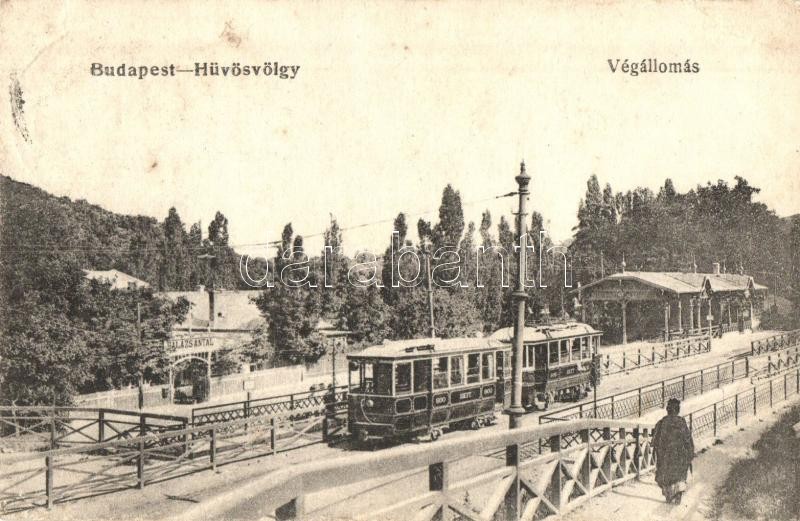 Beschreibung: Budapest II. Hűvösvölgy, Villamosvasút végállomás, Balázs Antal vendéglője (Rb)