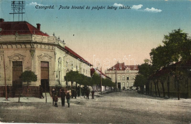 Csongrád, Postahivatal, Polgári leány iskola (Rb) https://www.darabanth.com/de/27-Gross-Auktion/27.1/Ansichtskarten/Ungarn~10794/Csongrad-Postahivatal-Polgari-leany-iskola-Rb~II1545799