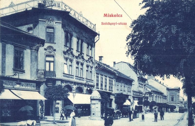 Miskolc, Széchenyi utca, Pannónia szálloda, üzletek és villamos https://www.darabanth.com/de/27-Gross-Auktion/27.1/Ansichtskarten/Ungarn~10794/Miskolc-Szechenyi-utca-Pannonia-szalloda-uzletek-es-villamos~II1573541