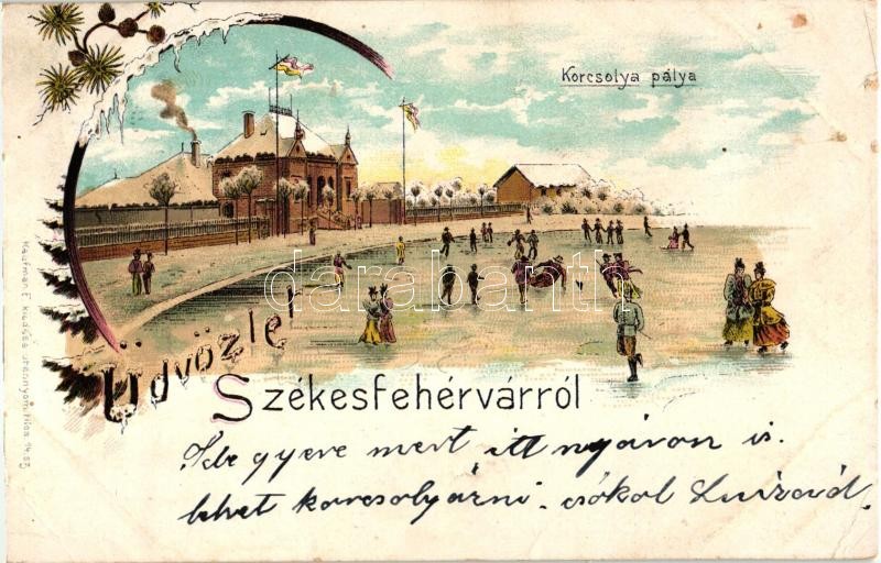 Székesfehérvár, Korcsolya pálya. Kaufman F. kiadása 14. Art Nouveau li... https://www.darabanth.com/de/27-Gross-Auktion/27.1/Ansichtskarten/Ungarn~10794/Szekesfehervar-Korcsolya-palya-Kaufman-F-kiadasa-14-Art-Nouveau-litho-apro-szakadas-ti~II1587646