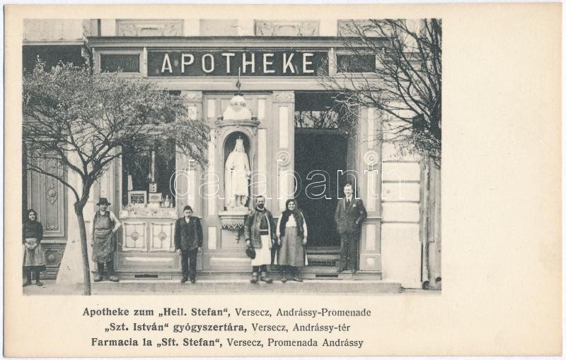 Versec, Vrsac; Szent István gyógyszertára. A. Weiser kiadása / Apothek... https://www.darabanth.com/de/27-Gross-Auktion/27.1/Ansichtskarten/Vojvodina~10799/Versec-Vrsac-Szent-Istvan-gyogyszertara-A-Weiser-kiadasa-Apotheke-zum-Heil-Stefan-Farma~II1573237