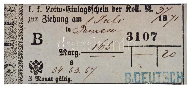 Beschreibung: Temesvár 1871. Lottójegy, bélyegzéssel T:III /
