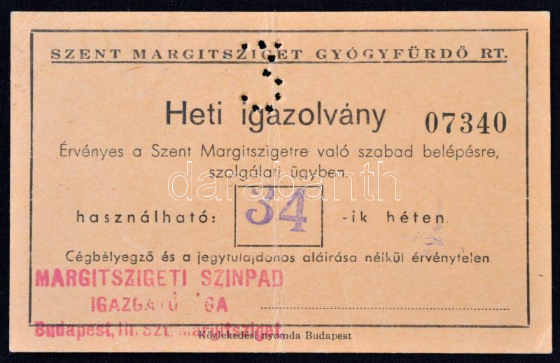 1924 A Szent Margitsziget heti igazolványa, hajtásnyommal https://www.darabanth.com/de/270-Fernauktion/270.0/Andere-Sammelgebiete/Dokument~300115/1924-A-Szent-Margitsziget-heti-igazolvanya-hajtasnyommal~II1365545