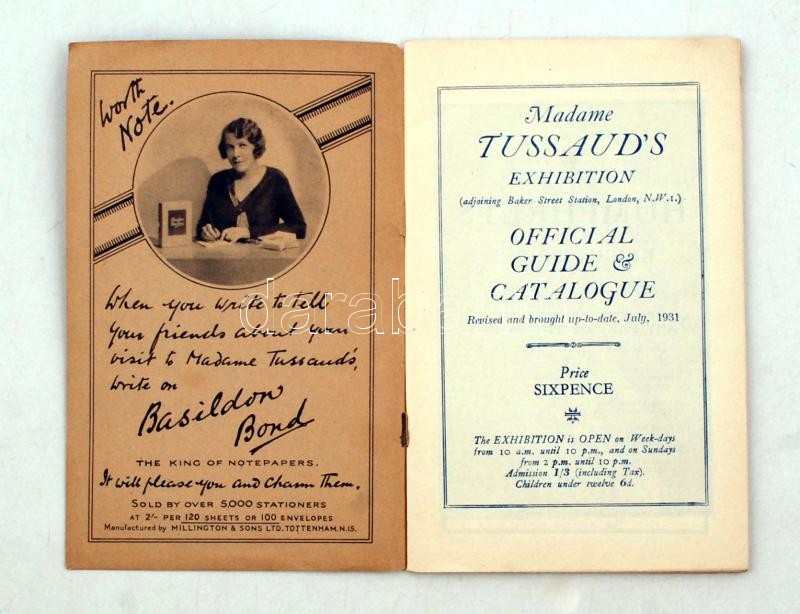1931 Madame Tussaud's Exhibition Official Guide & Catalogue, ... https://www.darabanth.com/de/270-Fernauktion/270.0/Andere-Sammelgebiete/Drucksachen~4/1931-Madame-Tussauds-Exhibition-Official-Guide-Catalogue-kiallitasi-vezeto-kopott-papirko~II1363868