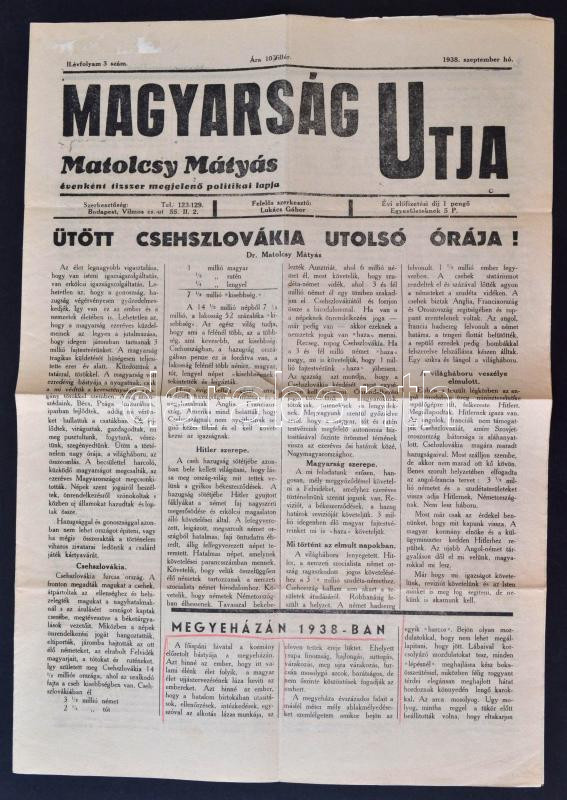 Beschreibung: 1938 Magyarság útja. A Felvidék visszatértét ünneplő szám.
