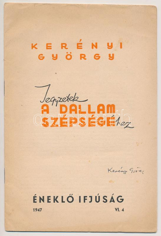 1947 Kerényi György: Jegyzetek a dallam szépségéhez, ALÁÍRT!, Éneklő I... https://www.darabanth.com/de/270-Fernauktion/270.0/Andere-Sammelgebiete/Drucksachen~4/1947-Kerenyi-Gyorgy-Jegyzetek-a-dallam-szepsegehez-ALAIRT-Eneklo-Ifjusag-VI4~II1363673