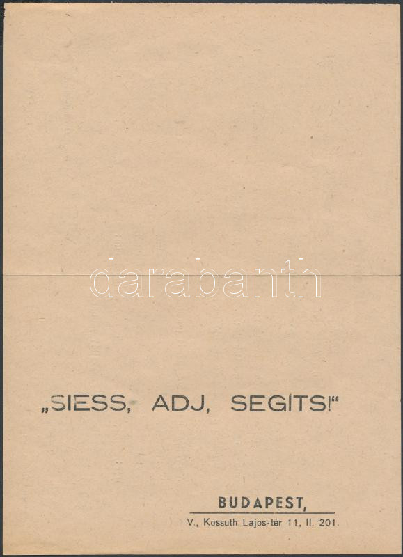A SAS (Siess, Adj, Segíts!) segélyszervezet részére történő borfelaján... https://www.darabanth.com/de/270-Fernauktion/270.0/Andere-Sammelgebiete/Drucksachen~4/A-SAS-Siess-Adj-Segits-segelyszervezet-reszere-torteno-borfelajanlasi-Jelentes-Budap~II1360886