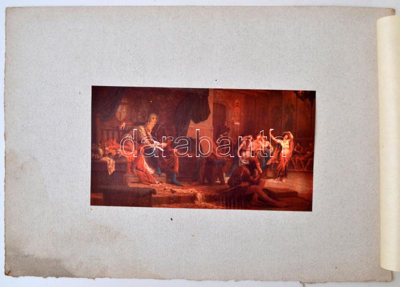 Beschreibung: Vegyes nyomtatvány tétel: utazási prospektusok, nyomatok, cca 20 db, díszes, megviselt állapotú vászonrátétes bőrkötésű albumban