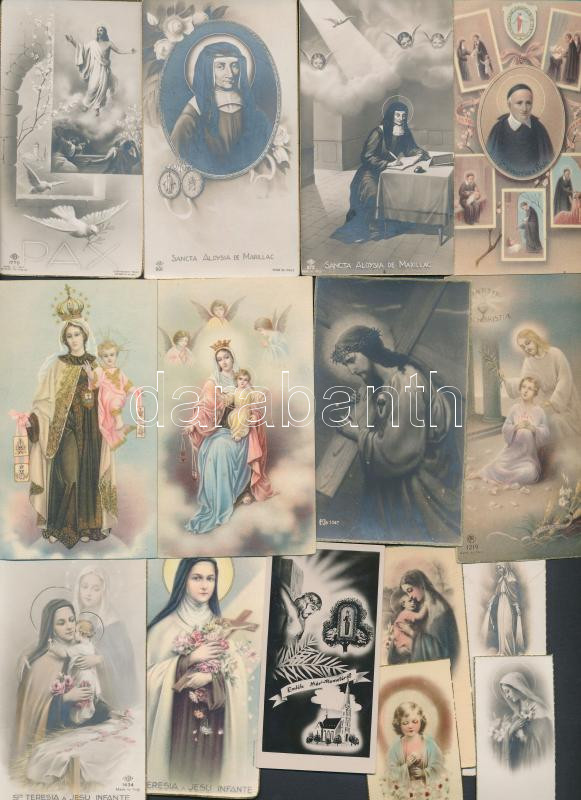 Beschreibung: cca 1930-1940 Vegyes szentkép tétel, 24db, különböző méretben és minőségben, cca 10x6cm
