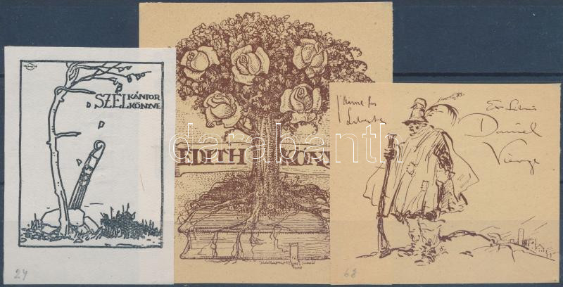 Beschreibung: Haranghy Jenő (1894-1951): Ex libris tétel, klisé, papír, 3db, 6x4,5cm, 8x7cm, 5,5x6cm