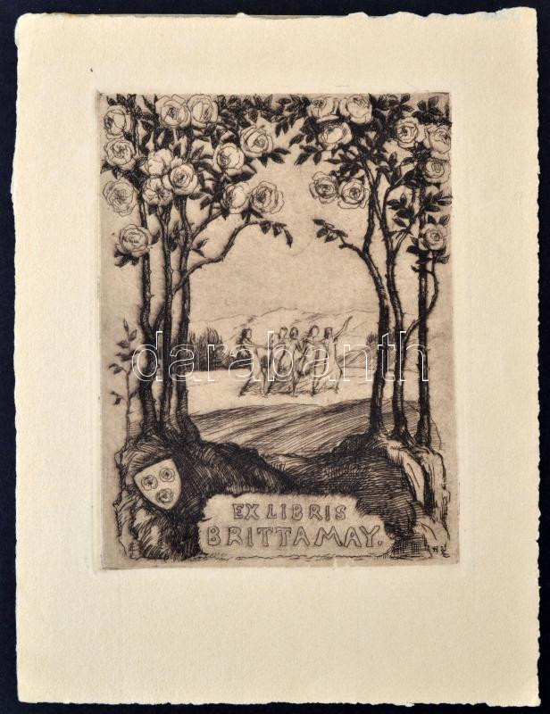 Beschreibung: Jokisch Eduard (1867-1943): Ex Libris Britta May. Rézkarc, papír, jelzett a karcon, 11×8 cm