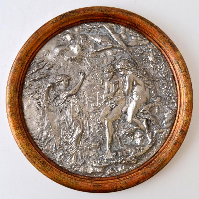 Kiűzetés a Paradicsomból, fém falikép, jelzés nélkül, fa keretben, d: ... https://www.darabanth.com/de/270-Fernauktion/270.0/Andere-Sammelgebiete/Flohmarkt~20/Kiuzetes-a-Paradicsombol-fem-falikep-jelzes-nelkul-fa-keretben-d-23-5-cm~II1361395