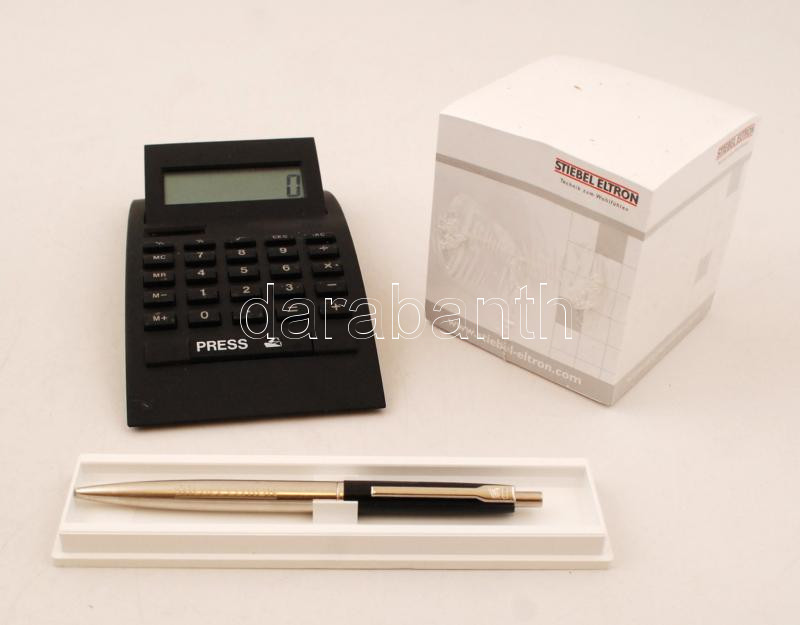 Beschreibung: Többfunkciós számológép saját dobozában, újszerű állapotban, működik + golyóstoll + Stiebel Eltron írótömb