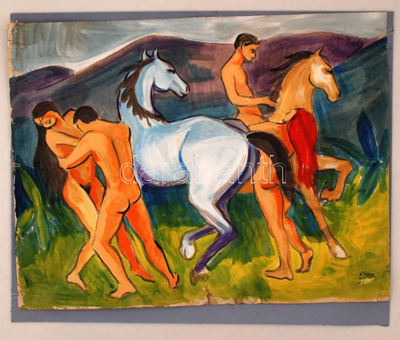 Kádár jelzéssel: Alakok lovakkal. Tempera, karton, 64×53 cm https://www.darabanth.com/de/270-Fernauktion/270.0/Andere-Sammelgebiete/Gemalde-und-Grafiken~6/Kadar-jelzessel-Alakok-lovakkal-Tempera-karton-64C39753-cm~II1336718
