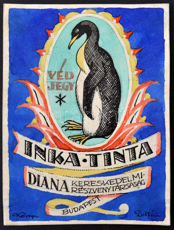 Kónya Zoltán (1891-?): Inka-Tinta, reklámterv. Vegyes technika, papír,... https://www.darabanth.com/de/270-Fernauktion/270.0/Andere-Sammelgebiete/Gemalde-und-Grafiken~6/Konya-Zoltan-1891-Inka-Tinta-reklamterv-Vegyes-technika-papir-jelzett-12x9-cm~II1365368
