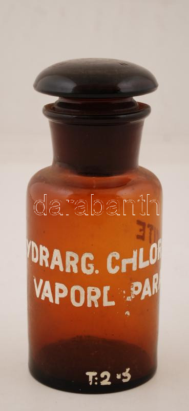 Barna színű dugós patikaüveg, felirattal, kopásnyomokkal, m: 19,5 cm https://www.darabanth.com/de/270-Fernauktion/270.0/Andere-Sammelgebiete/Glaser~16/Barna-szinu-dugos-patikauveg-felirattal-kopasnyomokkal-m-19-5-cm~II1365995
