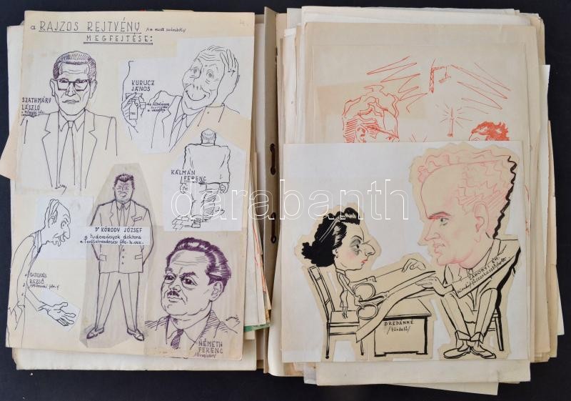 Komoróczy Lajos képzőművész mappányi hagyatéka, benne tervek, grafikák, különböző méretben és minőségben