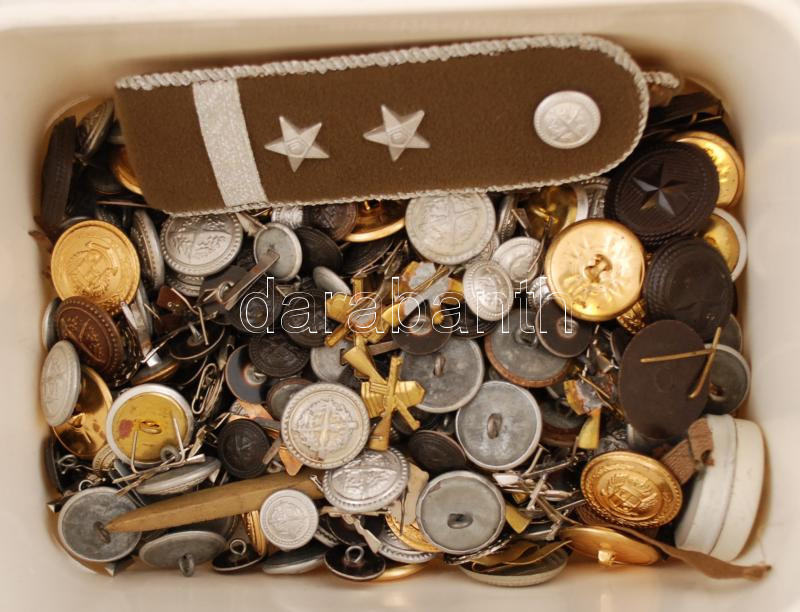 Beschreibung: Katonai gomb tétel, több száz gomb, közte váll-lap is
