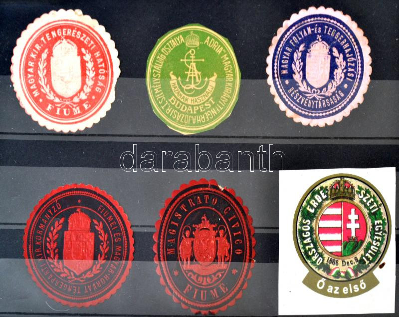 Beschreibung: 5 db klf Tengerészeti pecsétbélyeg RR! + Országos Erdészeti Egyesület öntapadós bélyeg