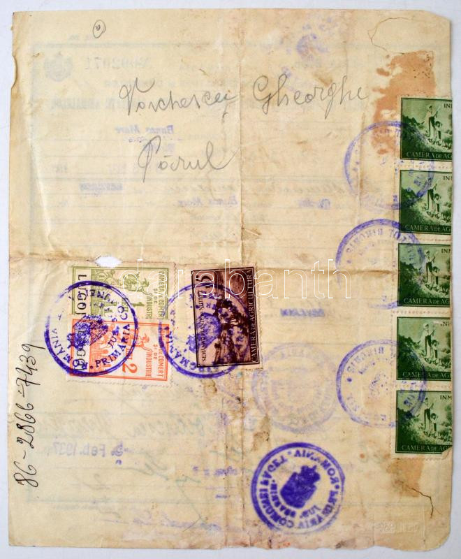 1937 román Marhalevél 1Lei + 2Lei lugosi helyi okmánybélyeggel https://www.darabanth.com/de/270-Fernauktion/270.0/Andere-Sammelgebiete/Stempelmarken~26/1937-roman-Marhalevel-1Lei-plus-2Lei-lugosi-helyi-okmanybelyeggel~II1364877