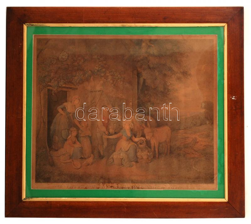 1802 W.R. Bigg festménye után T Buike metszette, "Saturday morning Favourite Chickens Going to Market" színes rézmetszete, üvegezett keretben, kifakult színekkel, 45×57 cm