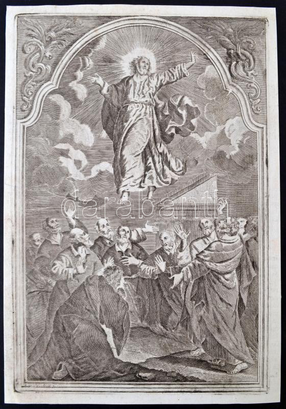 Carlo Orsolini (1703-1781): Krisztus megjelenik az apostoloknak, rézmetszet, papír, jelzett, 30×20,5 cm / Carlo Orsolini (1703-1781): Christ appears to the Apostles, copper etching, paper, signed, 30×20,5 cm