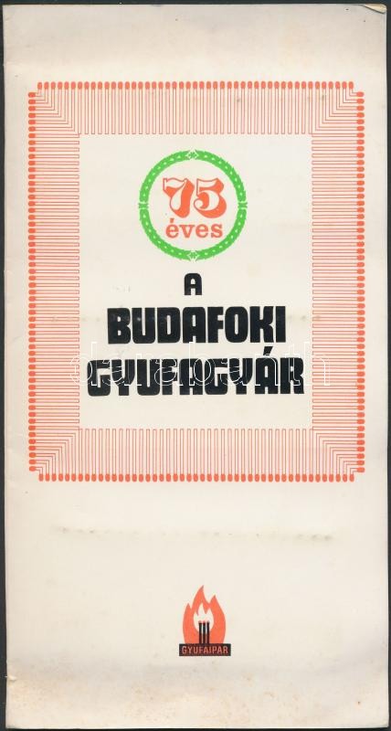 Beschreibung: 75 éves a Budafoki Gyufagyár mappa, benne 5 db. gyufásdoboz, hiánytalan gyufákkal. Budafok, Gyufaipari Vállalat, 1971.