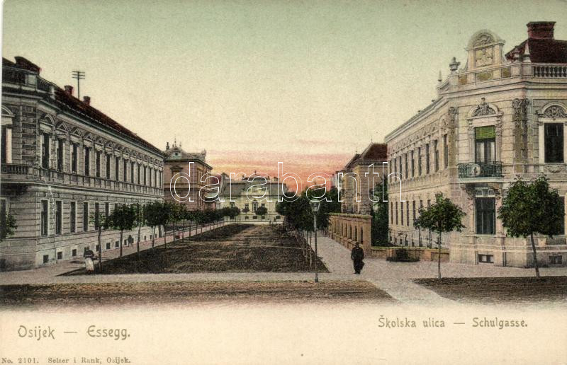 Eszék, Osijek, Esseg; Iskola utca / Skolska ulica / Schulgasse / stree... https://www.darabanth.com/de/270-Fernauktion/270.0/Ansichtskarten/Kroatien~300027/Eszek-Osijek-Esseg-Iskola-utca-Skolska-ulica-Schulgasse-street~II1364494