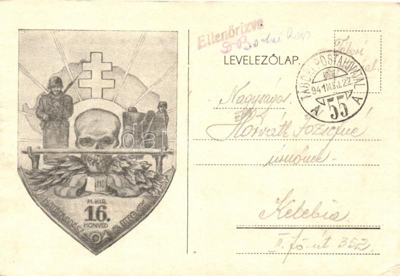 1941 A m. kir. 16 .honvéd határvadász üteg grafikai képeslapja / greet... https://www.darabanth.com/de/270-Fernauktion/270.0/Ansichtskarten/Militaria~300086/1941-A-m-kir-16-honved-hatarvadasz-uteg-grafikai-kepeslapja-greetin-card-of-the-WWII-Hung~II1362199