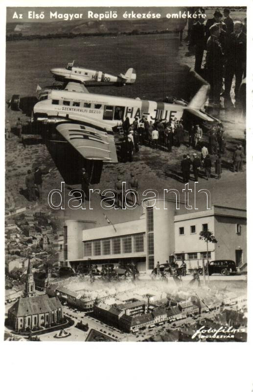 Beschreibung: Kolozsvár, az első magyar repülő érkezése emlékére, a vitéz Szentkirályi Dezső nevű Malért repülőgép / arrival of the first Hungarian aeroplane, photo