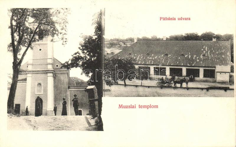 Muzsla, Muzla; templom, plébánia udvar / church, courtyard (Rb) https://www.darabanth.com/de/270-Fernauktion/270.0/Ansichtskarten/Slowakei~300016/Muzsla-Muzla-templom-plebania-udvar-church-courtyard-Rb~II1364644