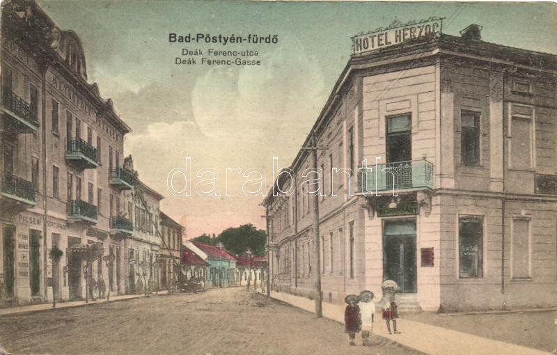 Pöstyénfürdő, Deák Ferenc utca, Hotel Metropole, Hotel Herzog; kiadja ... https://www.darabanth.com/de/270-Fernauktion/270.0/Ansichtskarten/Slowakei~300016/Postyenfurdo-Deak-Ferenc-utca-Hotel-Metropole-Hotel-Herzog-kiadja-Donath-Lipot-versenyar~II1366760