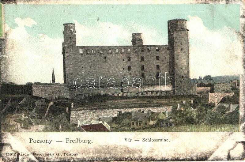 Pozsony, Pressburg, Bratislava; vár, kiadja Duschinsky G. / castle https://www.darabanth.com/de/270-Fernauktion/270.0/Ansichtskarten/Slowakei~300016/Pozsony-Pressburg-Bratislava-var-kiadja-Duschinsky-G-castle~II1359622