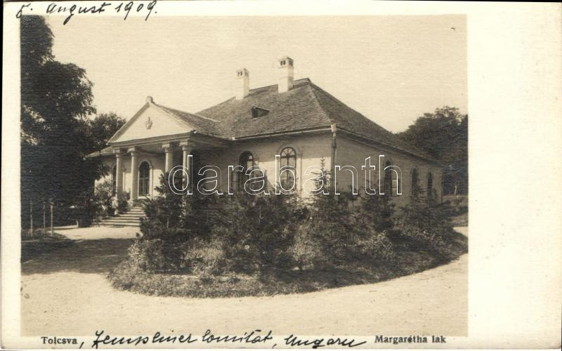 1909 Tolcsva, Margarétha lak, photo https://www.darabanth.com/de/270-Fernauktion/270.0/Ansichtskarten/Ungarn~300013/1909-Tolcsva-Margaretha-lak-photo~II1365190