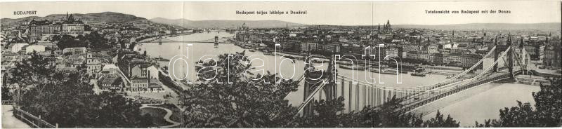 Beschreibung: Budapest, 3 részes dunai látkép; hátoldalon Friedrich Detsinyi árlistája / panoramacard