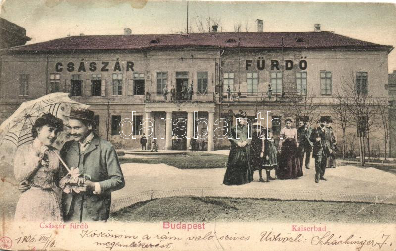 Beschreibung: Budapest II. Császár fürdő, Kaiserbad, kollázs / collage (Rb)
