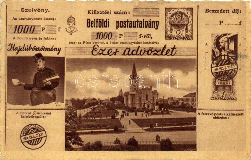 Beschreibung: Hajdúböszörmény, Ezer üdvözlet belföldi postautalvány