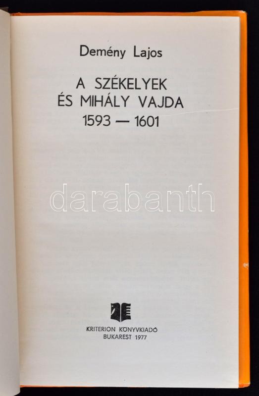 Demény Lajos: A székelyek és Mihály vajda. 1593-1601. Budapest, 1977, ... https://www.darabanth.com/de/270-Fernauktion/270.0/Bucher/Bucher-Geschichte~15/Demeny-Lajos-A-szekelyek-es-Mihaly-vajda-1593-1601-Budapest-1977-Kriterion-Konyvkiado-Ki~II1360710