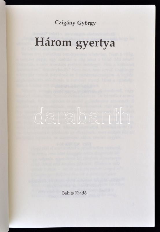 Czigány György: Három gyertya. Szekszárd, 1992, Babits Kiadó. Ragaszto... https://www.darabanth.com/de/270-Fernauktion/270.0/Bucher/Bucher-Sonstige-Raritaten~43/Czigany-Gyorgy-Harom-gyertya-Szekszard-1992-Babits-Kiado-Ragasztott-papir-76-p-A-szerzC5~II1360654