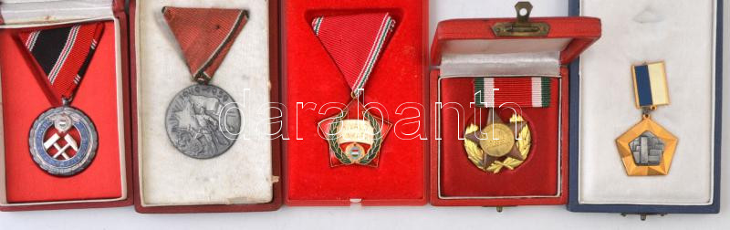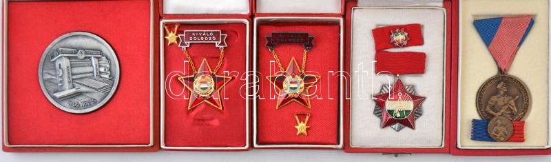 14db-os vegyes szocialista jelvény, kitüntetés egy sport díjéremmel nagyrészt eredeti tokban, közte 1962. "Magyar-Szovjet Timföld-Alumínium Egyezmény" Al emlékérem eredeti dísztokban (60mm), 1959. "Tanácsköztársasági Emlékérem" ezüstözött Br kitüntetés eredeti dísztokban T:2,2-