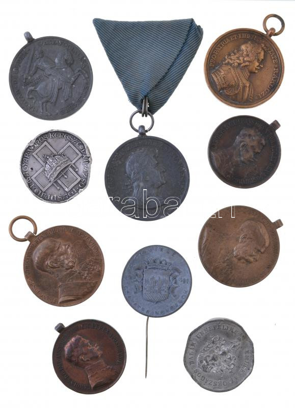 10pcs of military decorations, pins and commemorative medals, with Hungary 1898. "Commemorative Jubilee Medal for the Armed Forces" without ribbon, 1941. "Southern Hungary Medal" without ribbon C:VF-VG
