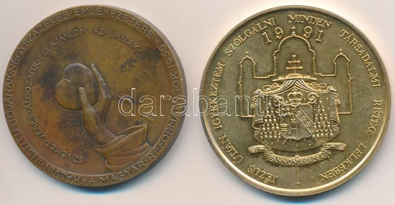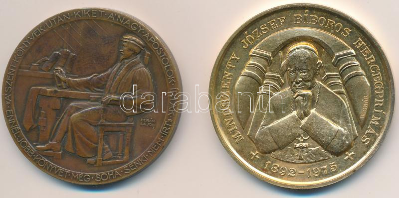 Beschreibung: Berán Lajos (1882-1943) 1936. "Magyar Reformátusok Kálvin Institúciójának 400 éves emlékezetére" Br emlékérem (40mm) + Bognár György (1944-) 1991. "Mindszenty József Bíboros Hercegprímás" újratemetése Esztergomban, aranyozott fém emlékérem (42,5mm) T:2