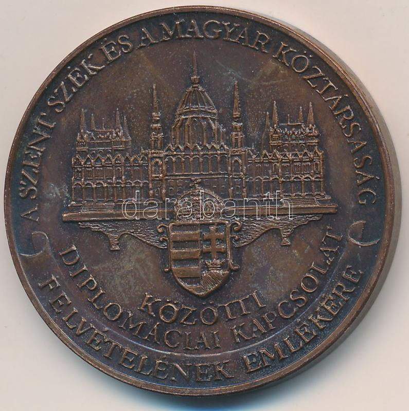 Bozó Gyula (1913-2004) 1999. "A Szent Szék és a Magyar Köztársaság közötti diplomáciai kapcsolat felvételének emlékére" kétoldalas Br emlékérem (42mm) T:2