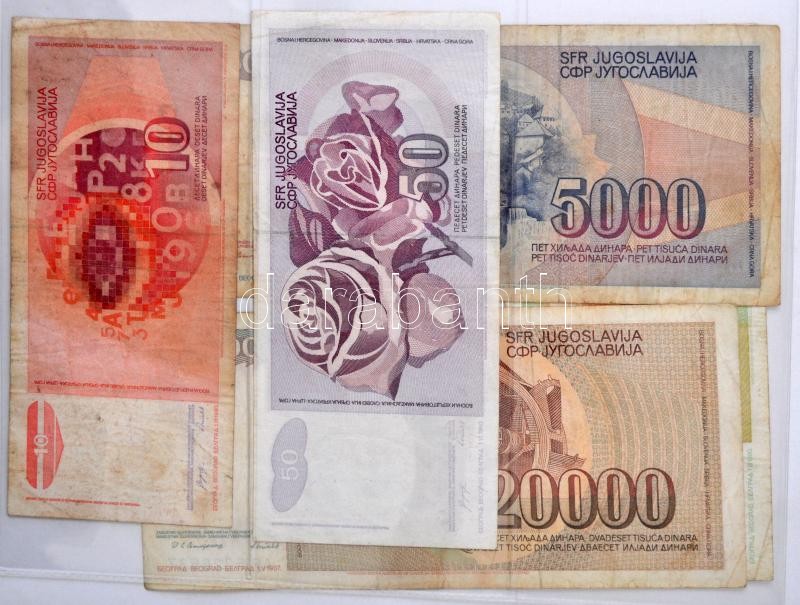 73db-os tartalmas, vegyes bankjegy gyűjtemény kék színű "NUMIS" berakóban, túlnyomórészt jugoszláv, valamint román, csehszlovák és venezuelai bankjegyek, a berakóban üres helyekkel további bankjegyek számára T:I-III 73pcs of foreign banknotes in blue "NUMIS" binder, mainly with Yugoslavian but also with Romanian, Czechslovakian and Venezuelan banknotes, the binder has some empty spaces for additional banknotes C:UNC-F