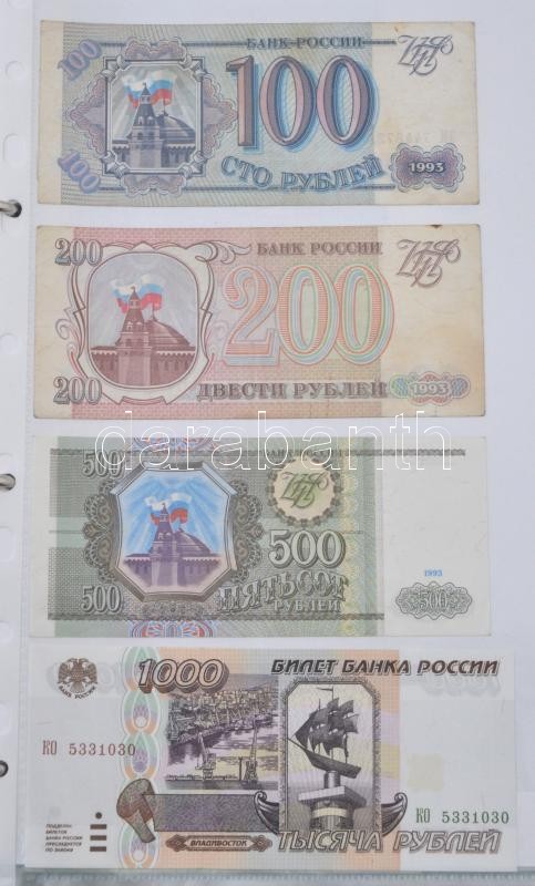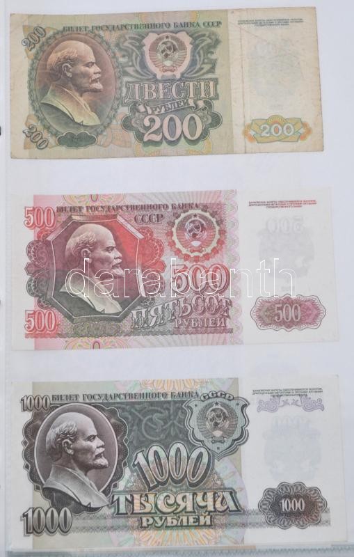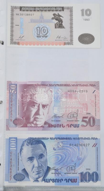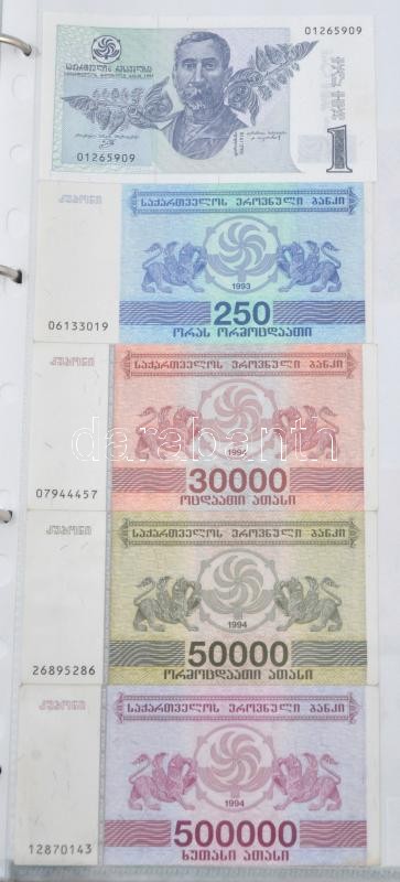 ~220db-os vegyes eurázsiai országok bankjegy gyűjteménye, közte litván, kazah, grúz, üzbég bankjegyek is, gyűrűs mappában. Színes, érdekes, ország szerint rendezett anyag, érdemes megtekinteni! T:I - III ~220pcs collection of various banknotes from Eurasian countries, among them Lithuanian, Kazakh, Georgian and Uzbek banknotes, in binder. Interesting, colorful lot of banknotes ordered by country, well worth seeing! C:UNC-F