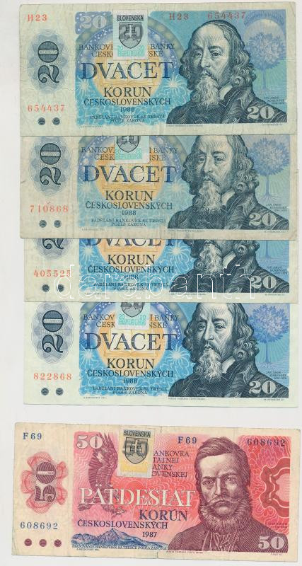 Csehszlovákia 1961. 100K (2x) + 1987. 50K (3x) + 1988. 20K (4x) bankje... https://www.darabanth.com/de/270-Fernauktion/270.0/Numismatik/Weltweit-Banknoten~200012/Csehszlovakia-1961-100K-2x-plus-1987-50K-3x-plus-1988-20K-4x-bankjegyek-szlovak-felulbelyegzC3~II1359747