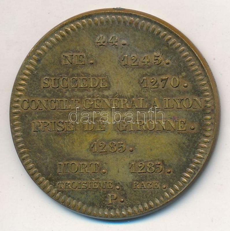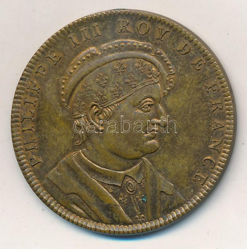 Franciaország ~1900. "III. Fülöp" peremén jelzett Br emlékérem "Francia Királyok sorozat" (13,75g/32mm) T:2